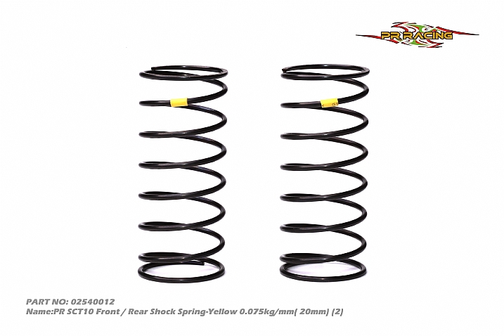 Name:PR SCT10 Front / Rear Shock Spring-Yellow 0.075kg/mm( 20mm) (2)